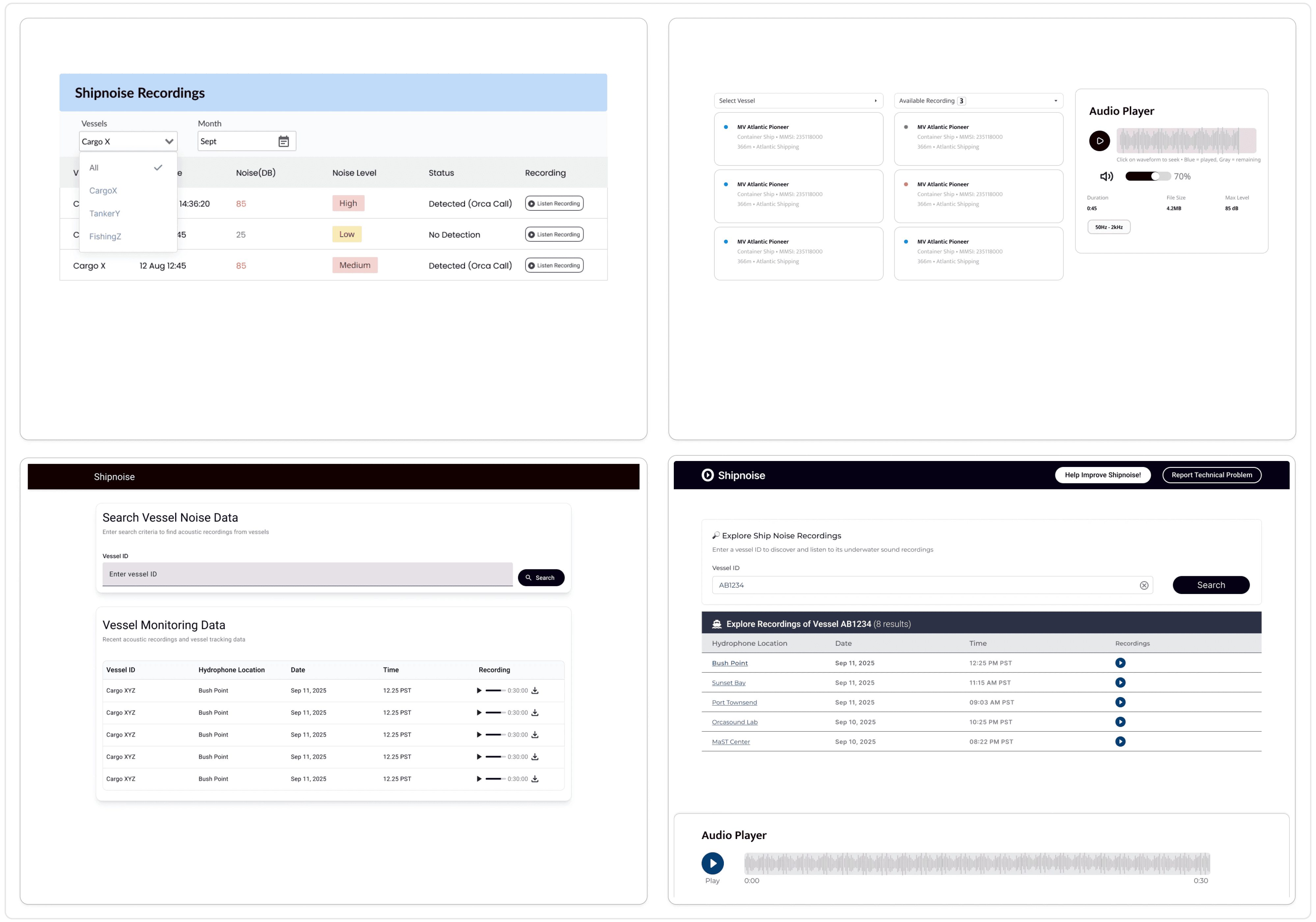 The following interactive prototype demonstrates the core user journey: a Ship Pilot searching for a vessel’s acoustic signature and reviewing its impact. What to look for in this prototype: