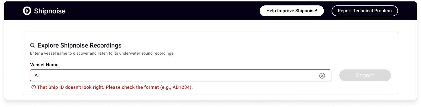Try searching for a vessel ID in the embed below to see how the system validates input in real-time.