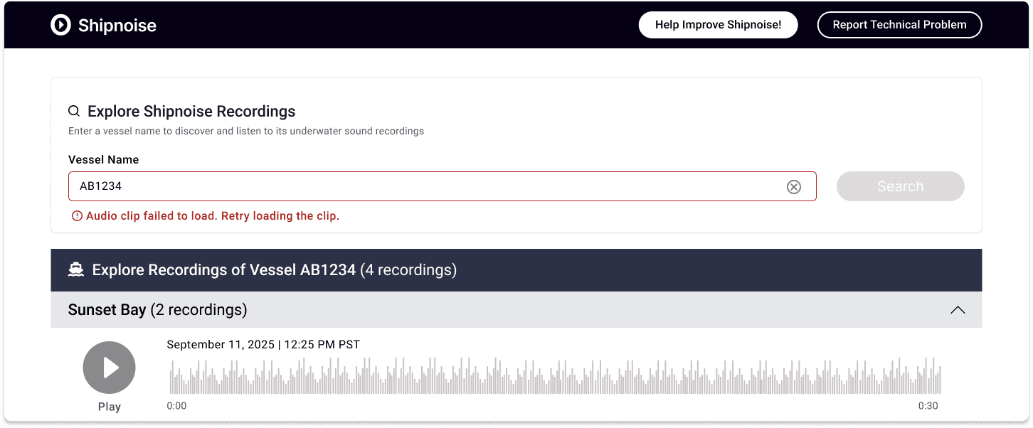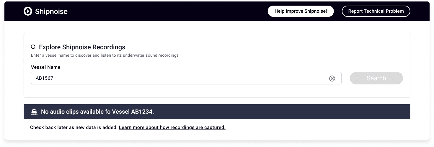 Empathetic Recovery: When data is missing, the UI doesn't just show a blank screen; it explains why (e.g., the ship hasn't passed a hydrophone yet) and offers an alternative action, such as viewing a map of active hydrophones.
